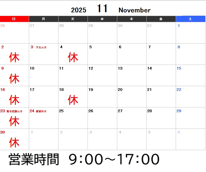 ゴールデンウイーク期間中は、日曜日のみお休みさせていただきます。